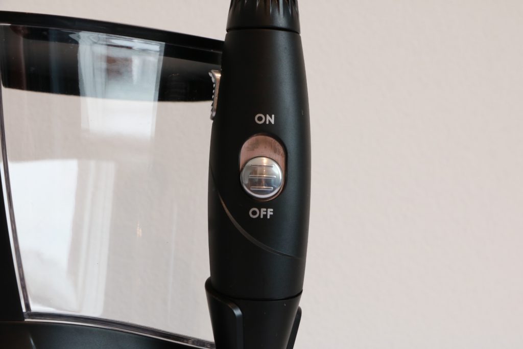Door middel van de ronde knop kan je de snelheid aangeven. Hij kan van 1 t/m 10, en ik denk dat je voor jezelf moet uitvinden welke snelheid bij je past. Ook kan het zijn dat je in het begin wat lager begint zodat je aan de kracht van het apparaat kan wennen.